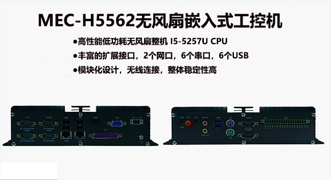 MEC-H5562是一款高性能緊湊型迷你無風扇工控機,支持酷睿i7/i5/i3/賽揚第5代處理器。這些將滿足工業和普通消費者領域的應用,需要擴展能力和成本效益。緊湊的迷你尺寸和堅固耐用的無風扇設計承受惡劣的工業環境的要求,以確保穩定性和耐久性,真正做到小身材,大能量!